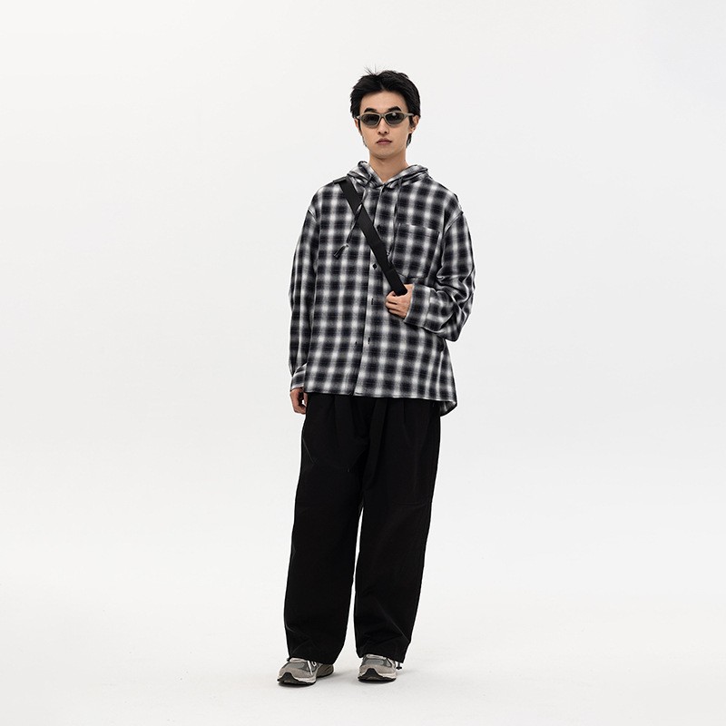 ATBORDER 春秋季新品渐变格子长袖衬衫外套男2024新款高级感衬衣