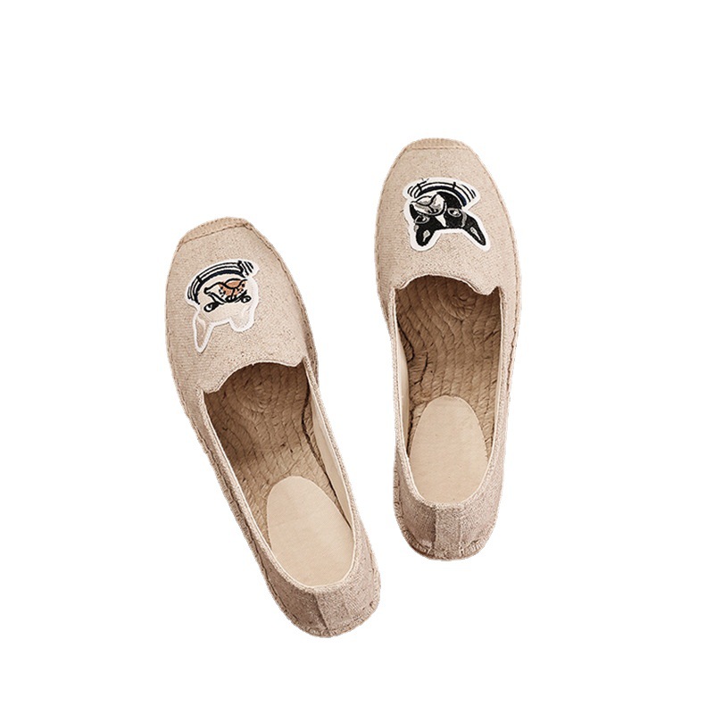 2022新款 小香风低帮帆布渔夫鞋女 复古平底牛筋底圆头布鞋现货