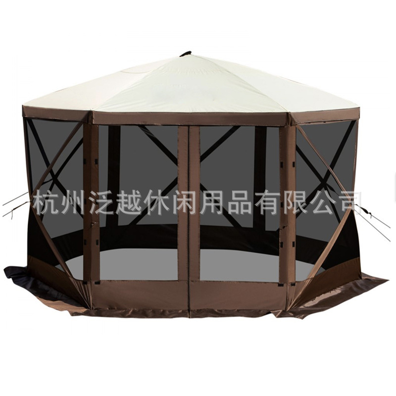 跨境户外野营六角帐篷全套速开露营防蚊防雨网纱便携式蒙古包帐篷