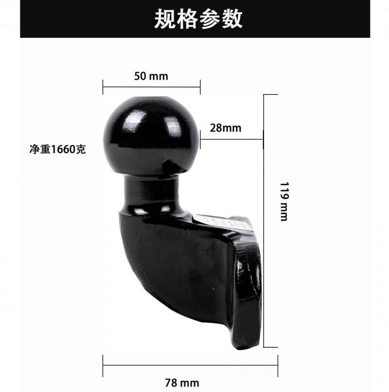 2T重型弯头拖车球 黑色50mm房车及拖车改装拖挂球Towball 2000kg