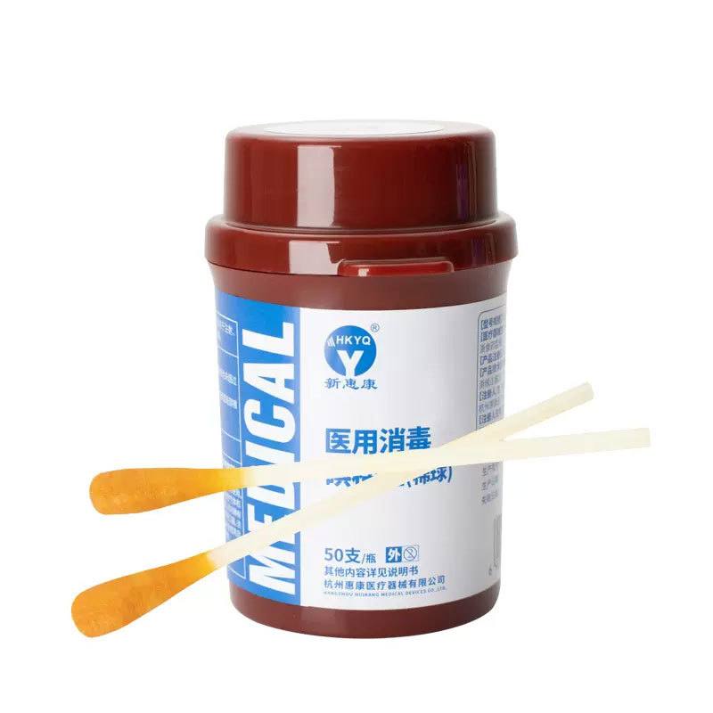 新惠康品牌碘伏棉签消毒脱脂棉罐装50支装棉签5罐一排医用棉球