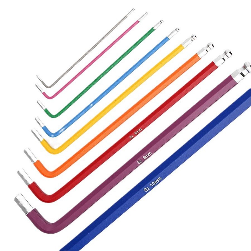 兆盛喷塑彩色内六角扳手套装 S2材质中长特长球头梅花英制内六角