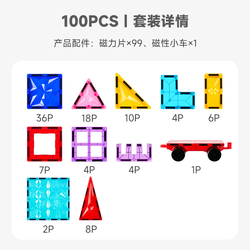 思创新钻面彩窗磁力片积木儿童益智彩窗炫彩磁力积玩具100p创意