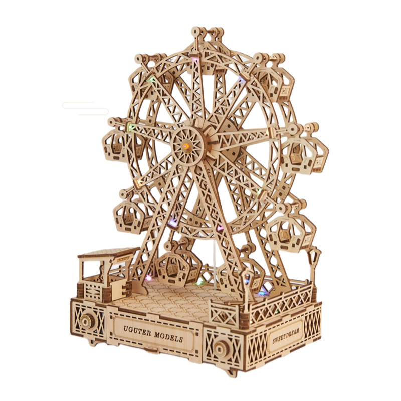 源头厂家音乐摩天轮3D立体拼图木制玩具益智拼装玩具DIY创意玩具