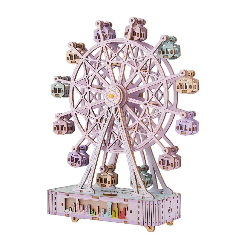 DIY彩色木质3D立体拼图异形拼图摩天轮模型木质机械高难度八音盒
