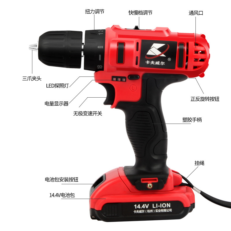卡夫威尔工业级锂电池有刷无刷手电钻多功能冲击钻大功率工具电锤