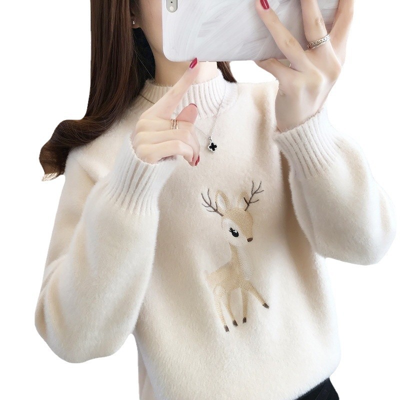 原版2024秋冬韩版水貂绒加绒加厚半高领百搭套头毛衣打底衫针织衫