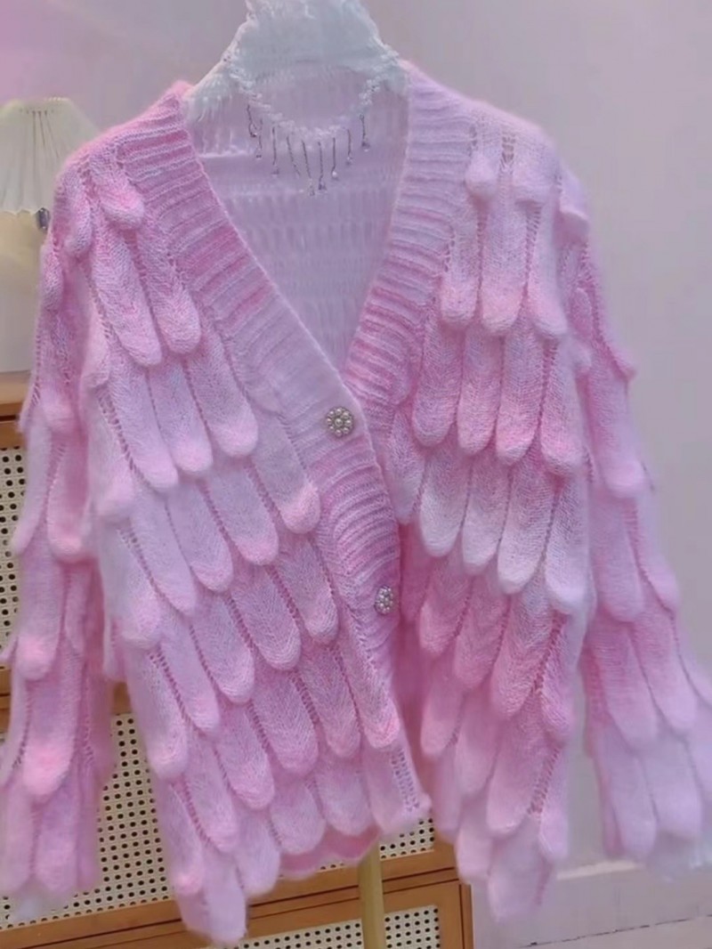 慵懒风渐变针织开衫女秋冬新款宽松洋气立体花朵扎染v领毛衣外套