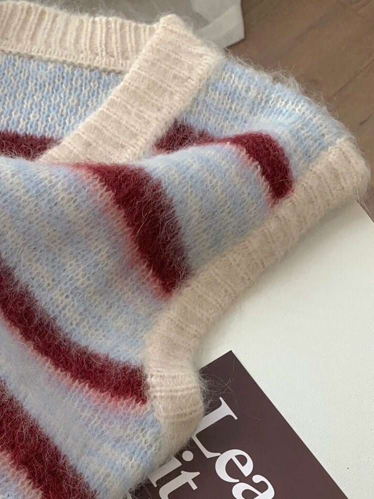 实拍毛绒绒舒适v领无袖马甲女早春季新款洋气粉色条纹叠穿背心