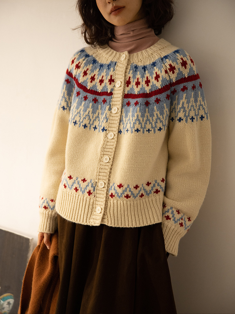2024森系复古宽松针织开衫女秋冬慵懒感外穿设计感小个子毛衣外套