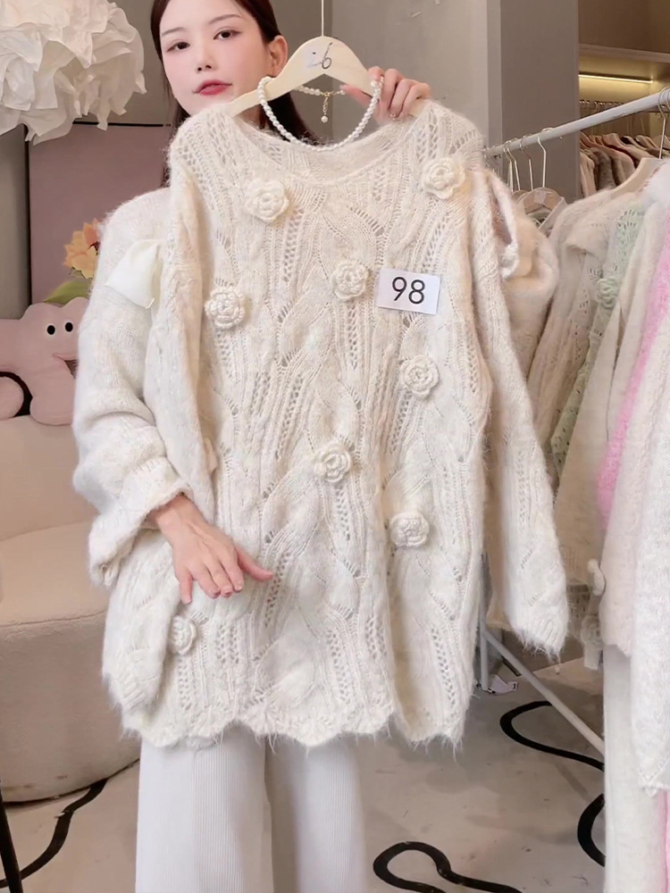 高级感宽松休闲洋气玫瑰钩花针织毛衣女秋冬新款温柔气质减龄上衣