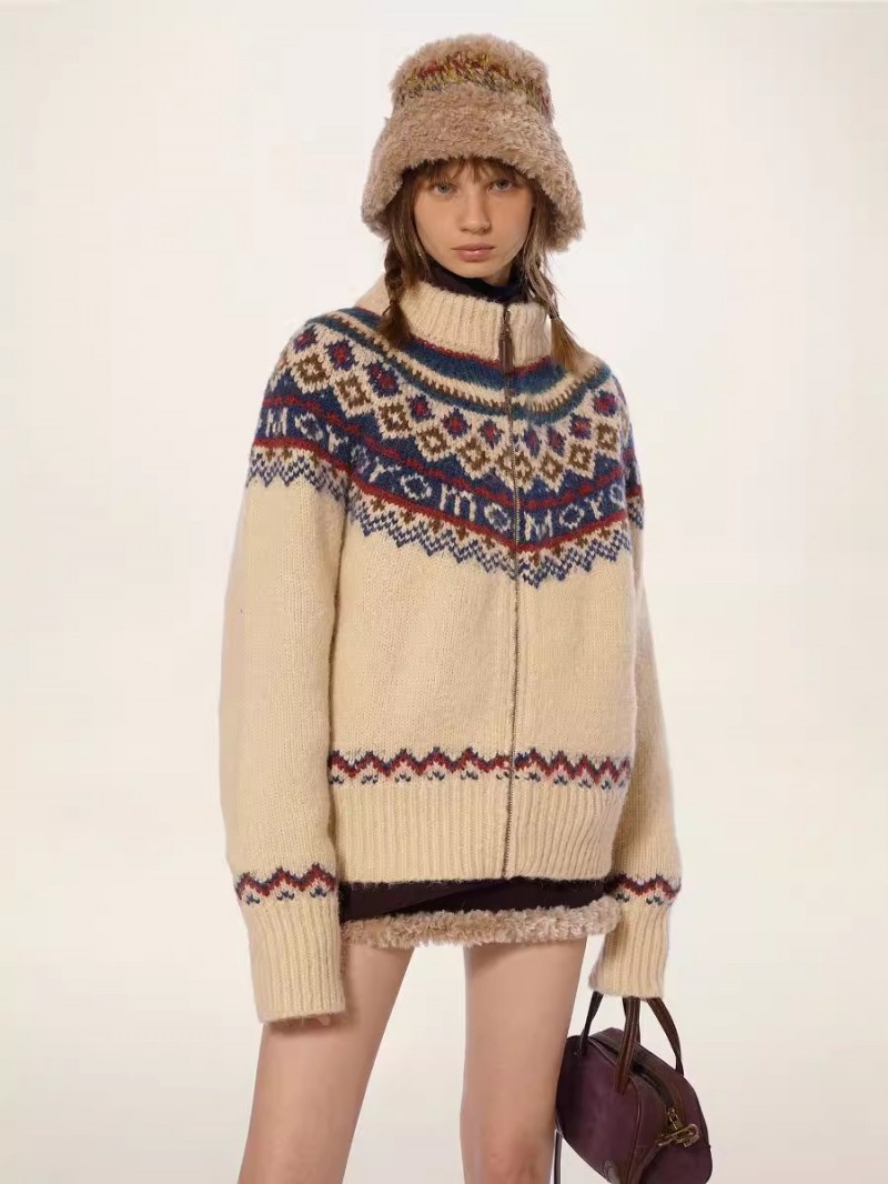 费尔岛复古毛衣女冬季2025加厚高领针织开衫宽松慵懒学院外套