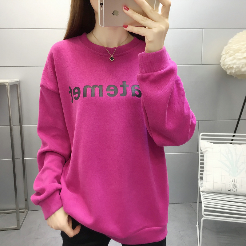 火龙果色卫衣女宽松韩版长袖2024秋冬新款chic时尚潮显瘦圆领上衣