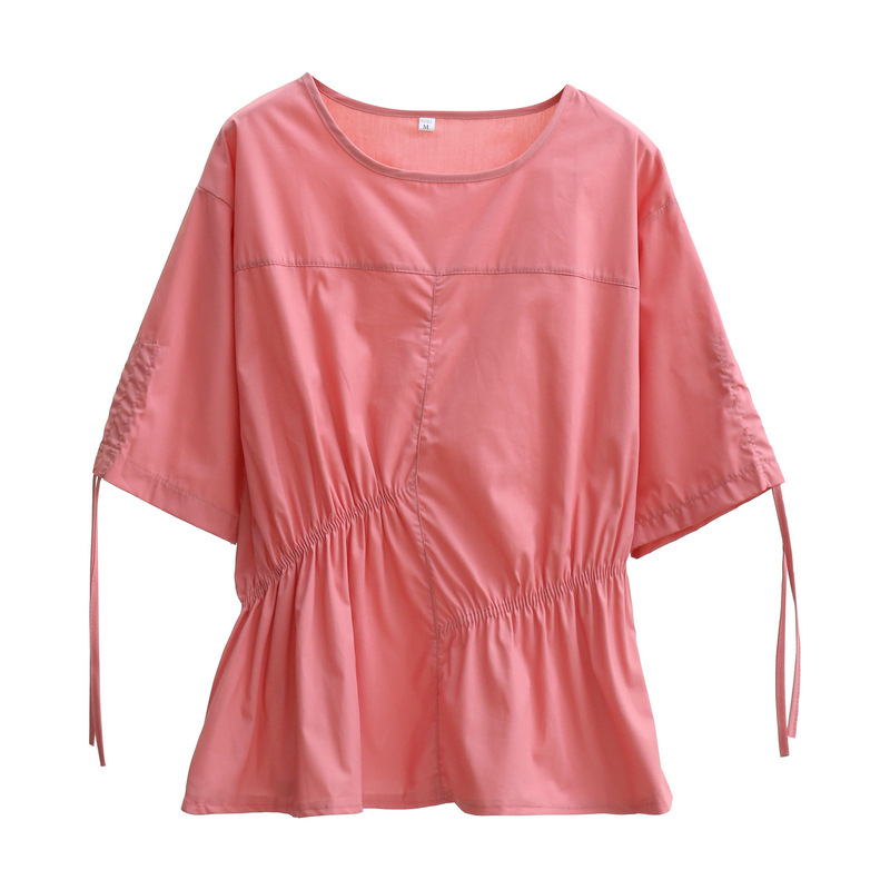 欧版白色衬衫女2024春秋新款抽绳袖不规则收腰荷叶边圆领显瘦上衣