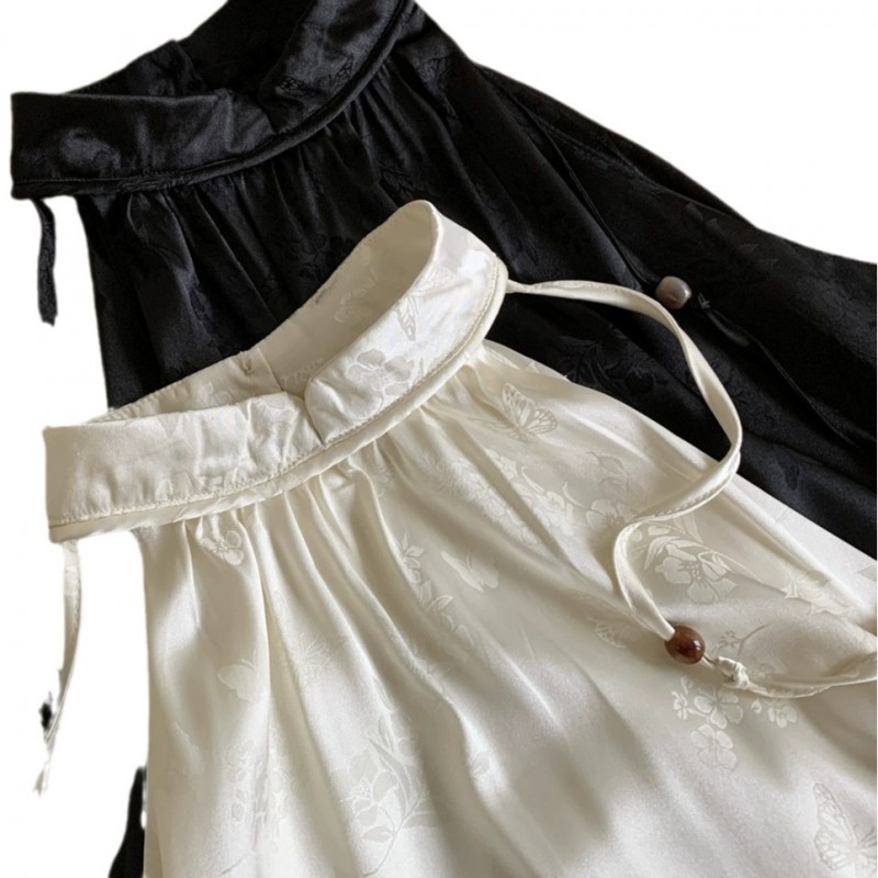 秋装2025年新款名媛无袖挂脖国风连衣裙女韩版宽松显瘦遮肚子长裙