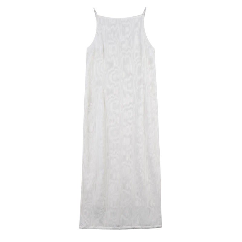 潮批发2025春夏新款瀑布感线条肌理珍珠金属扣肩带挖肩修身连衣裙