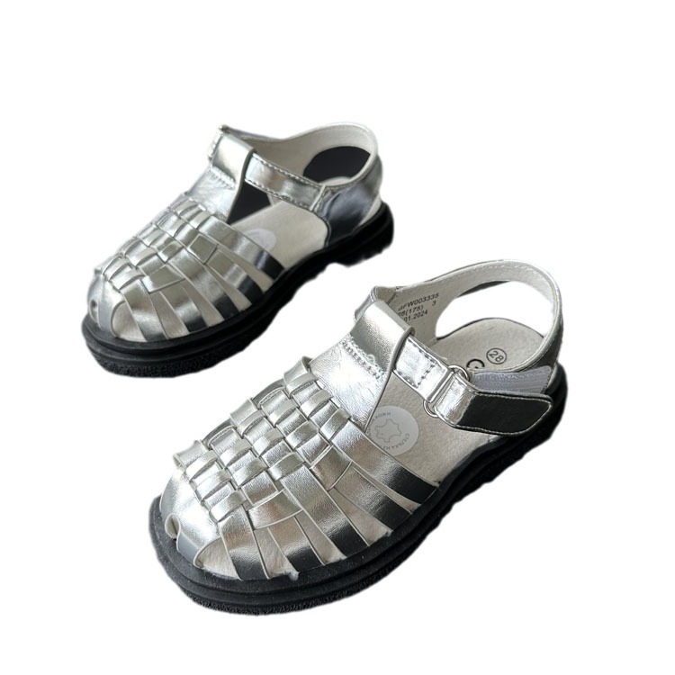 2024年夏季新款鸟巢鞋塔扣漆皮童凉鞋外贸批发