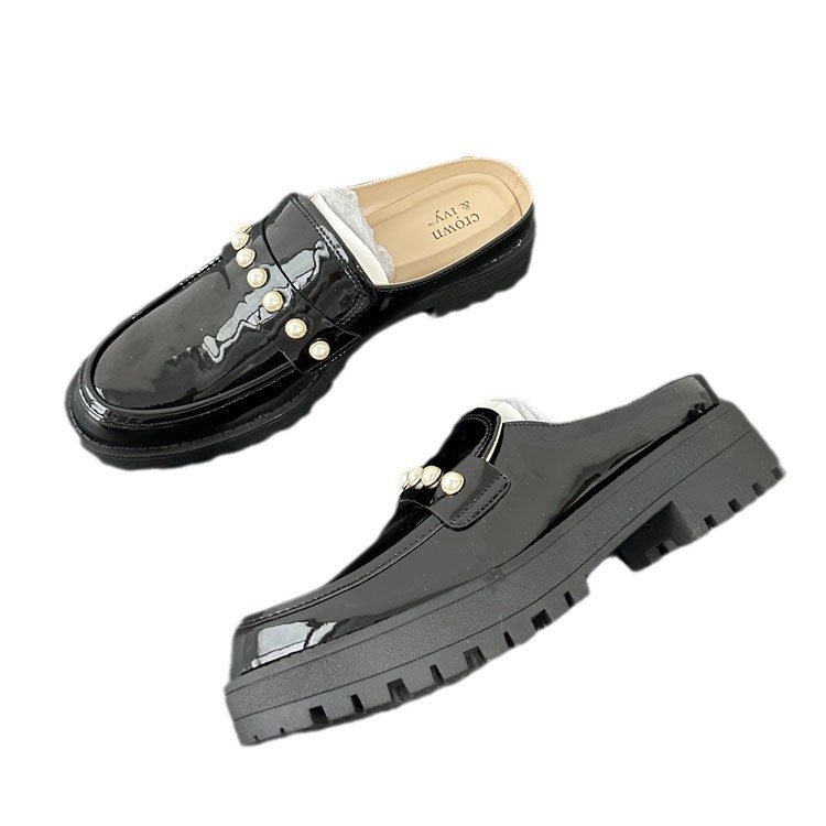 2024年夏季新款包头英伦半拖日常穿大码圆头休闲拖鞋外贸批发