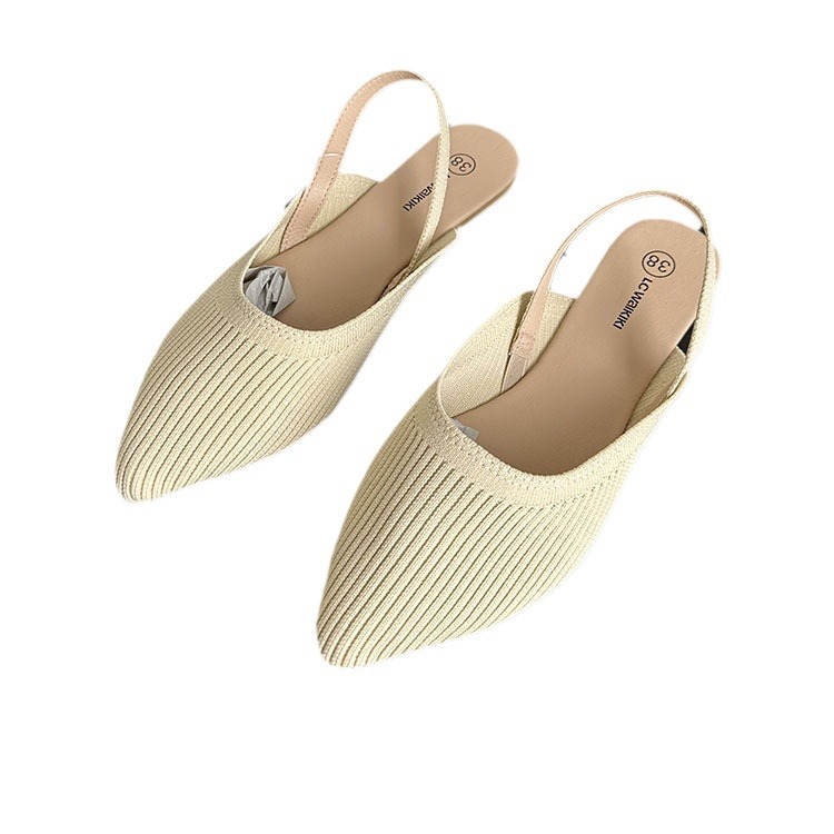 春夏季新款2025时尚外贸平底女凉鞋包头尖头豆豆单鞋36-40大码鞋