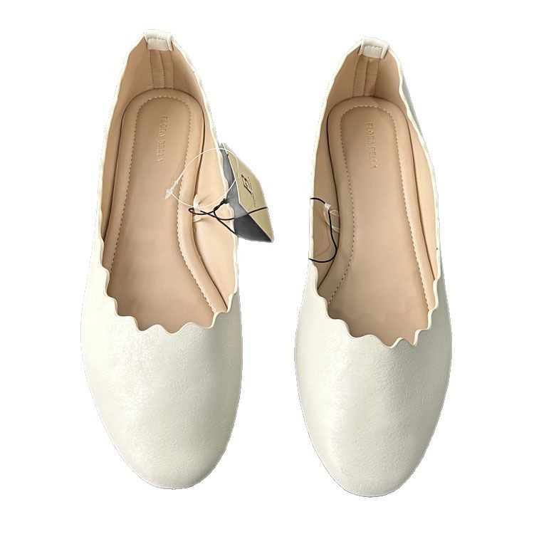 春季爆款圆头平底单鞋一脚蹬时尚百搭波浪边大码女鞋外贸批发