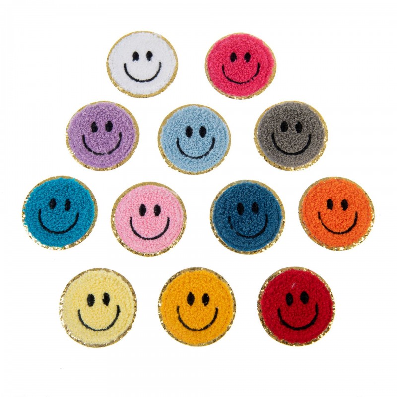 跨境专供补丁电脑绣花毛巾绣补丁贴多色可爱笑脸衣服辅料装饰布贴